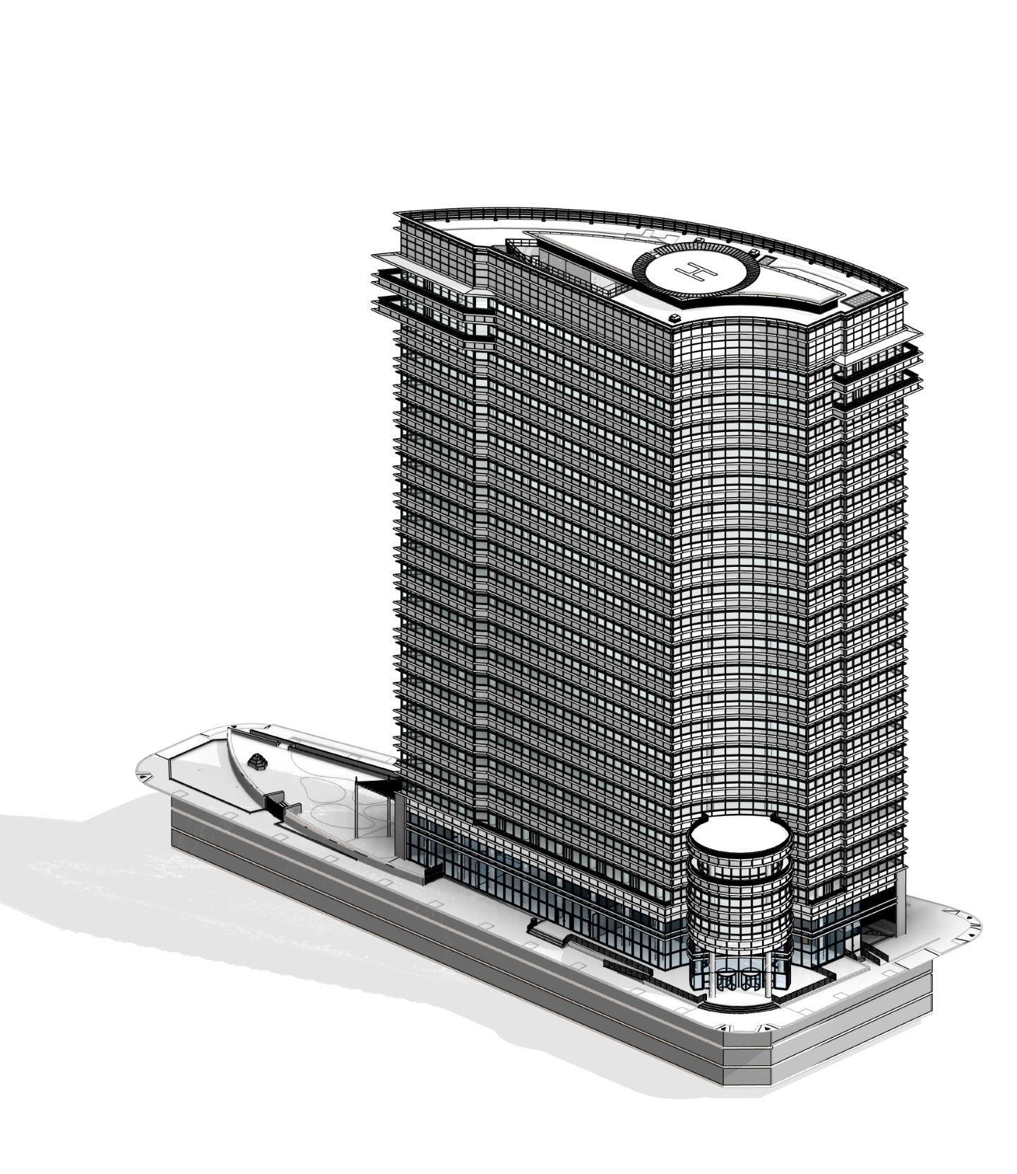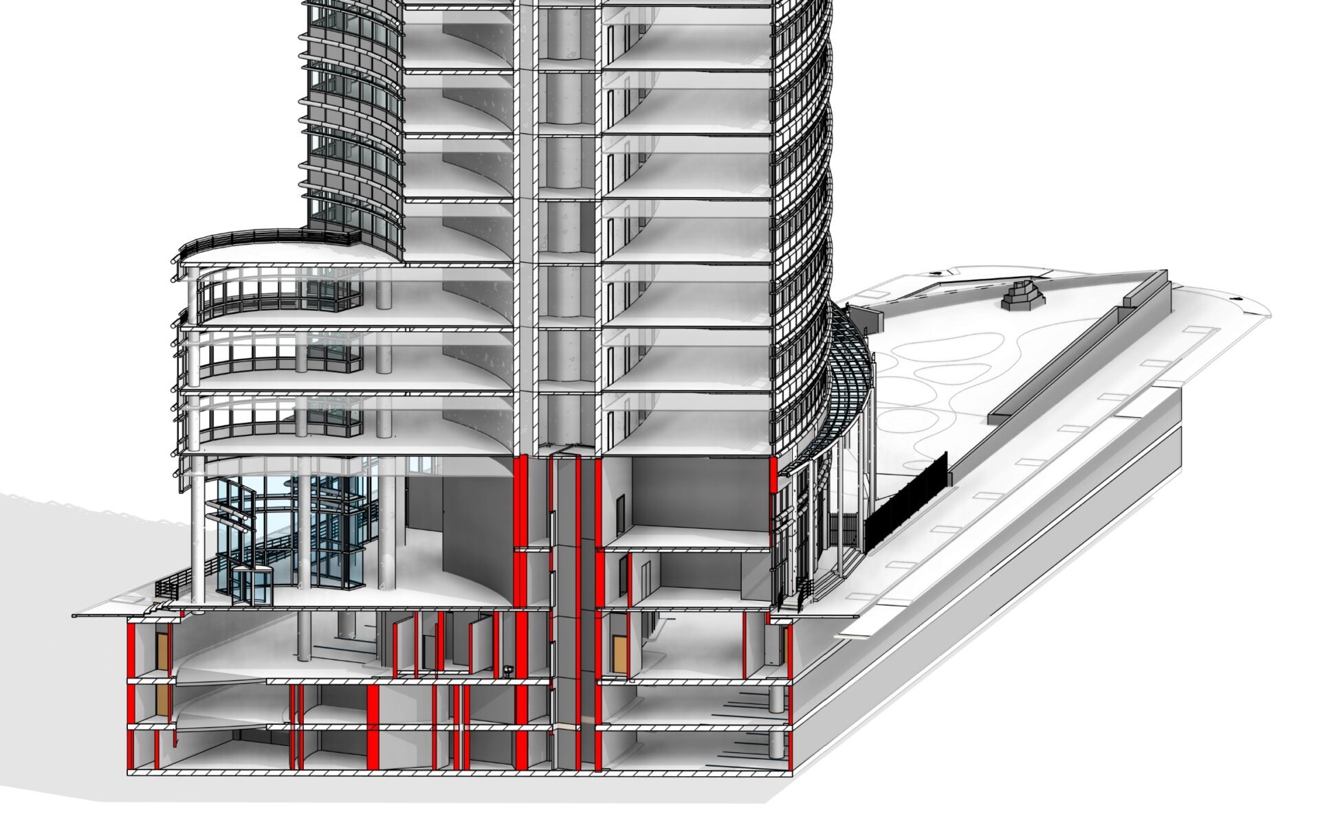 Edificio de Oficinas emblemático (Arq. Cersar Pelli). Modelado integral de estructura y obra civil, con el fin de utilizar el modelo BIM para la operación, mantenimiento y comercialización inmobiliaria. CABA, Oficinas 38300 m2 BIM Proyecto y Dirección de Obra