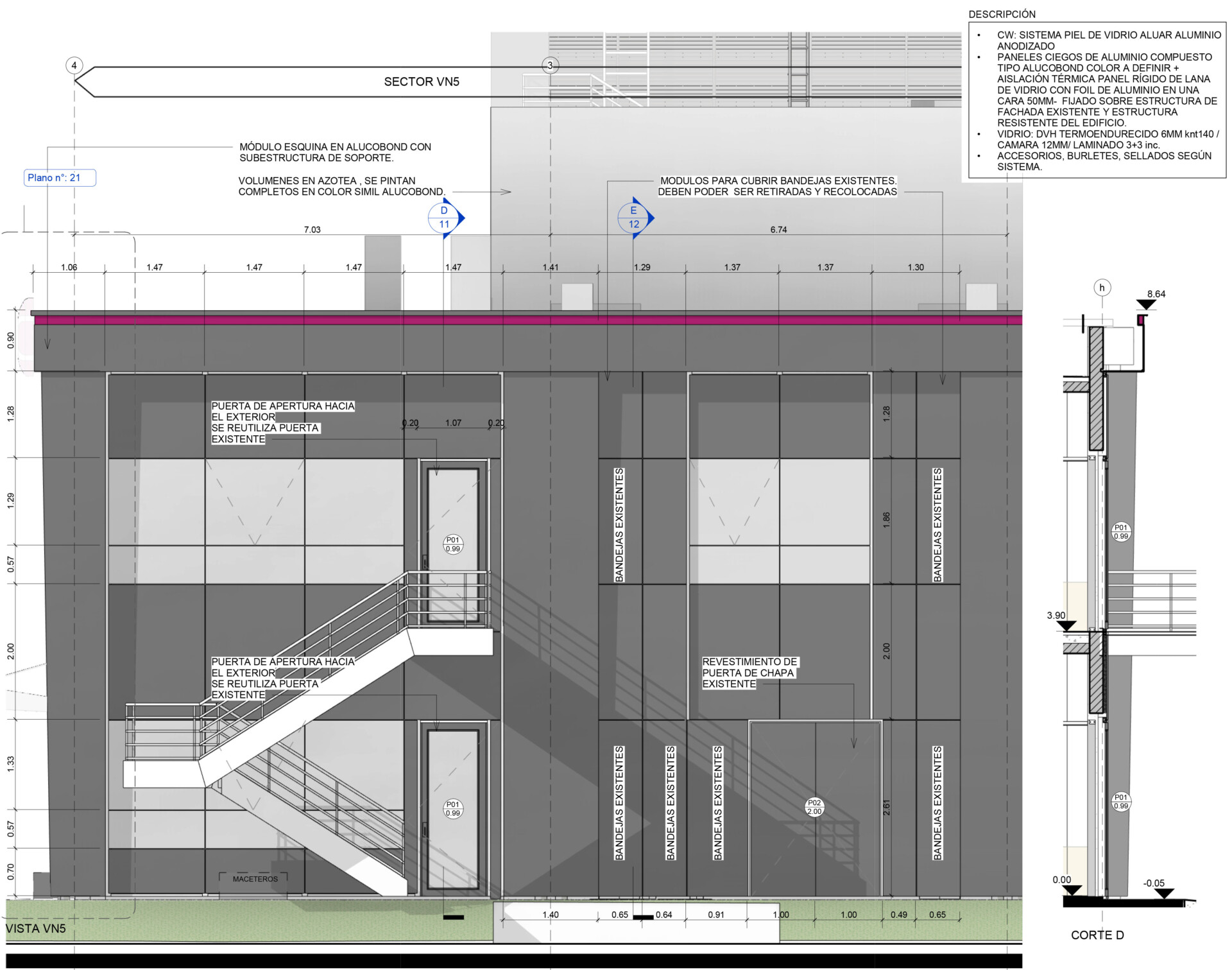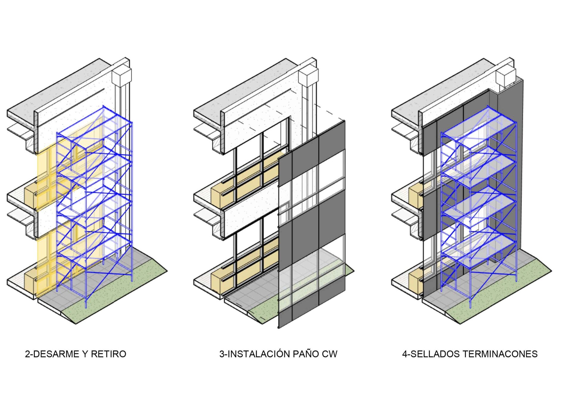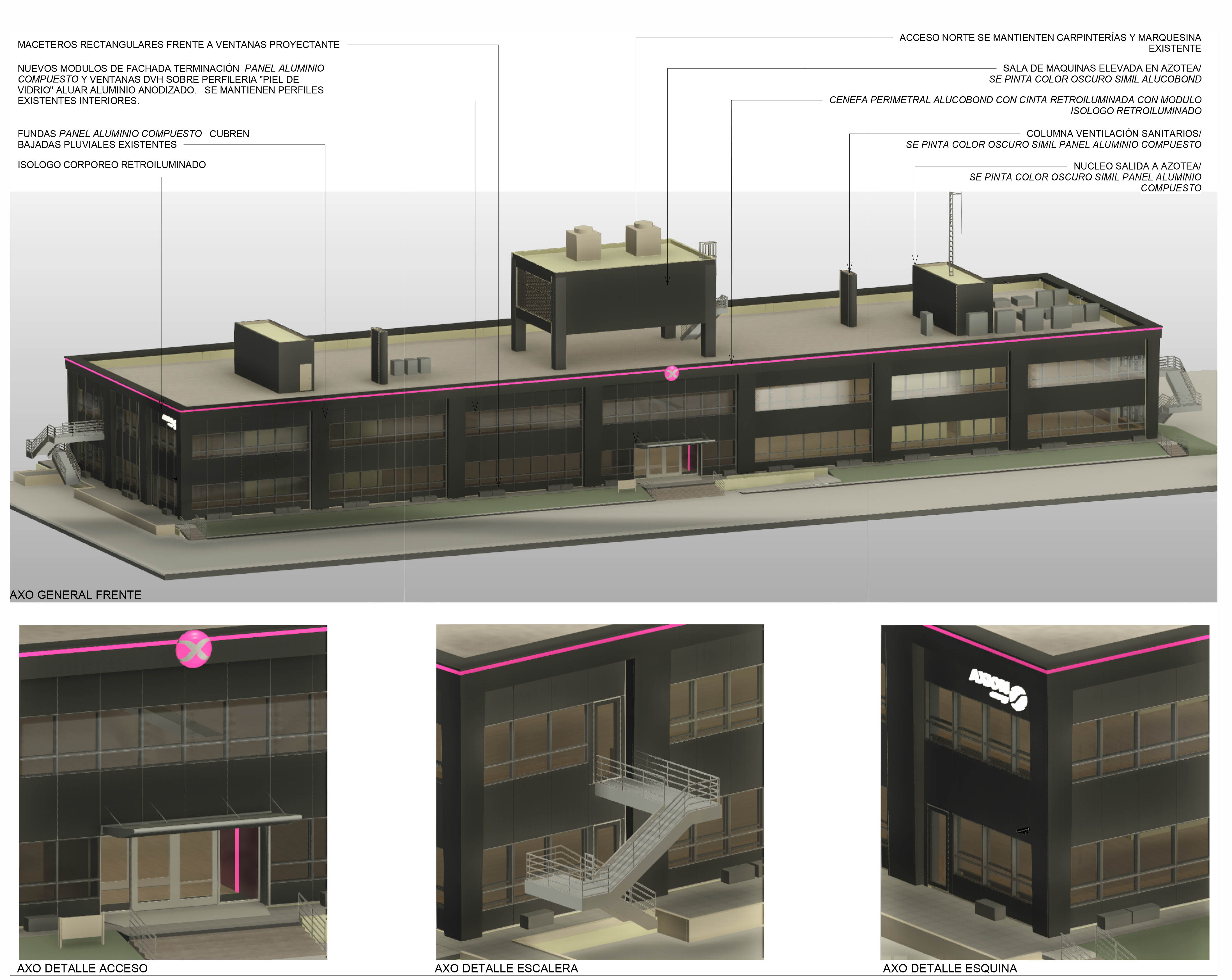 plazo integral de fachada de edificio existente. Relevamiento, modelado e ingeniería de detalle. Generación de documentación licitatoria del proyecto, cómputos y planillas de cotización, pliegos licitatorios. Contribuimos mediante el relevamiento detallado y la producción de ingeniería de detalle de precisión para eliminar contratiempos en la ejecución de la obra.