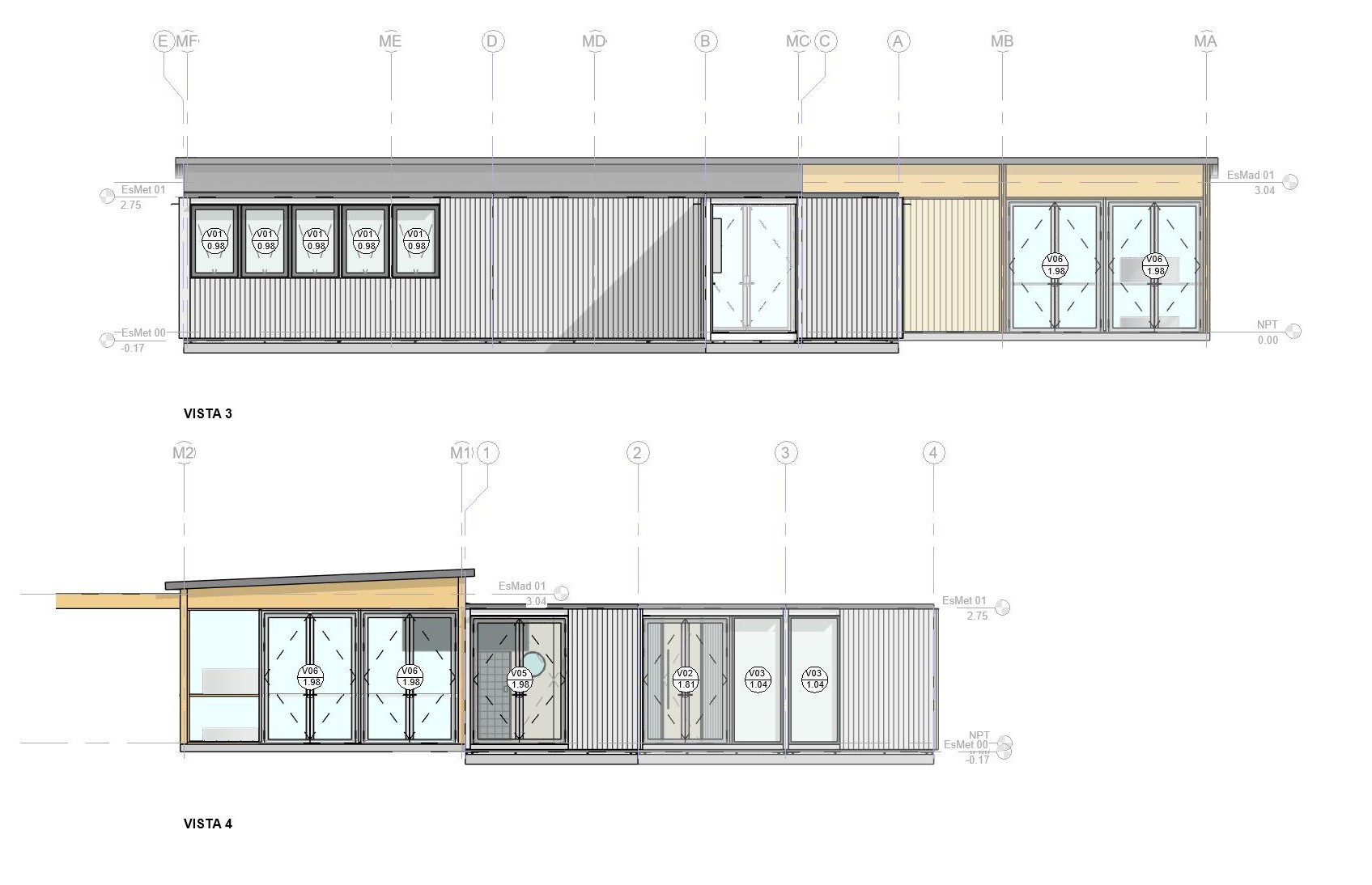 Restaurante de primera categoría. Tecnología constructiva mixta: módulos prefabricados metálicos y panelería de madera.